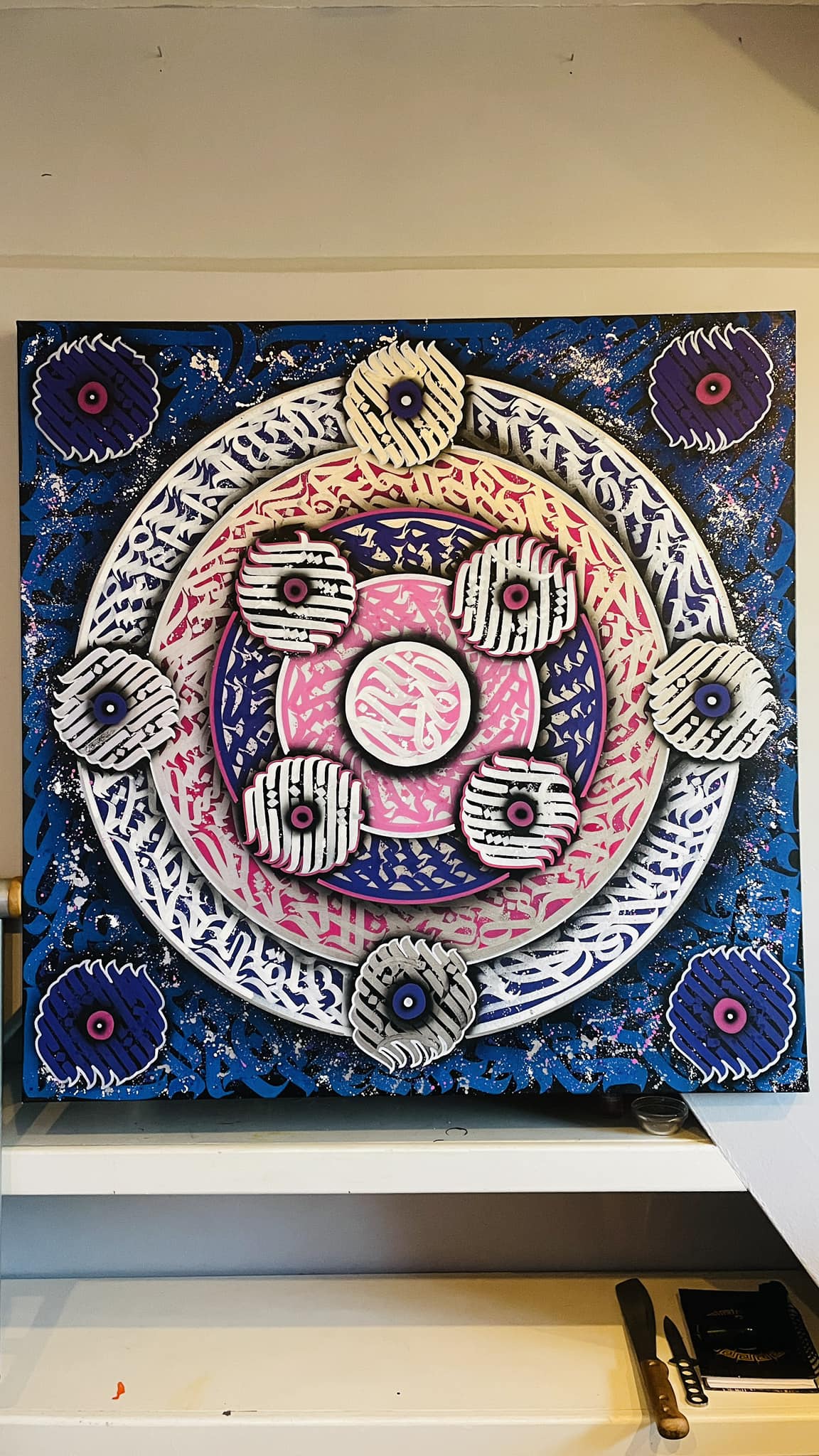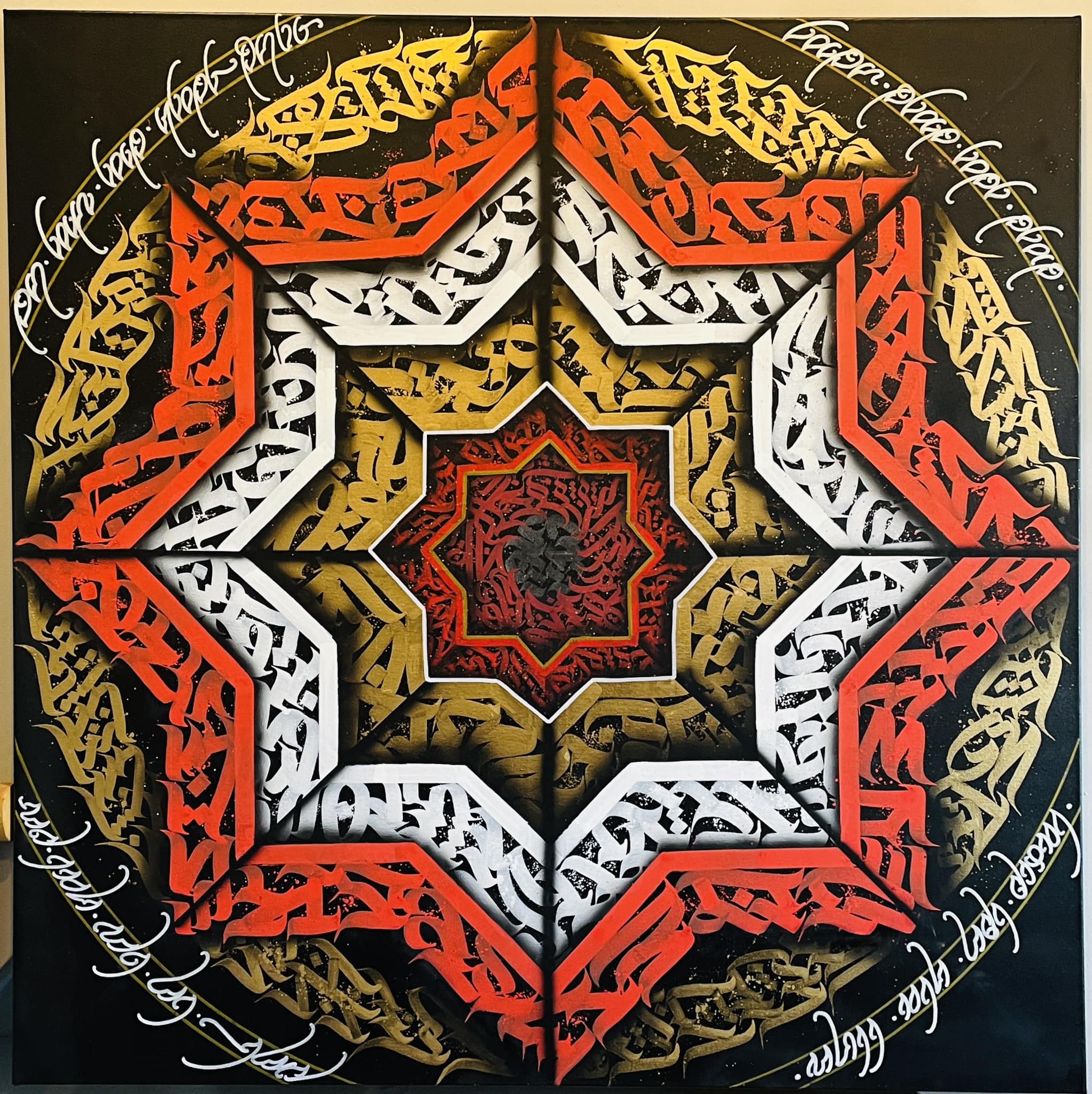 Burnzy, a versatile artist raised in the southwest of the UK, began his creative journey as a tattooist. With over a decade of experience, he mastered various forms of calligraphy and built a high reputation for his unique style of lettering. He now focuses on contemporary calligraffiti murals and canvases, infusing them with his captivating brush strokes, eye-catching layouts, and vibrant colors. Drawing inspiration from his extensive global travels through many urban environments, each of his creations is an original, showcasing a blend of classic styles with fresh innovation and worldly influence.