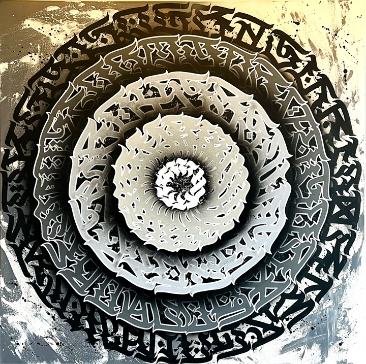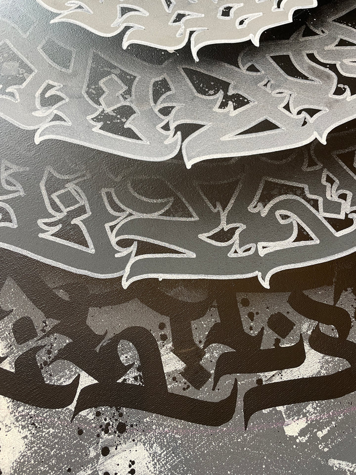 40x40 calligraffiti box canvas, made with original hand painted brush calligraphy by Burnzy Art, made with acrylic and spray paint, it comes signed, dated with certificates of authenticity.