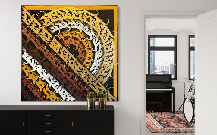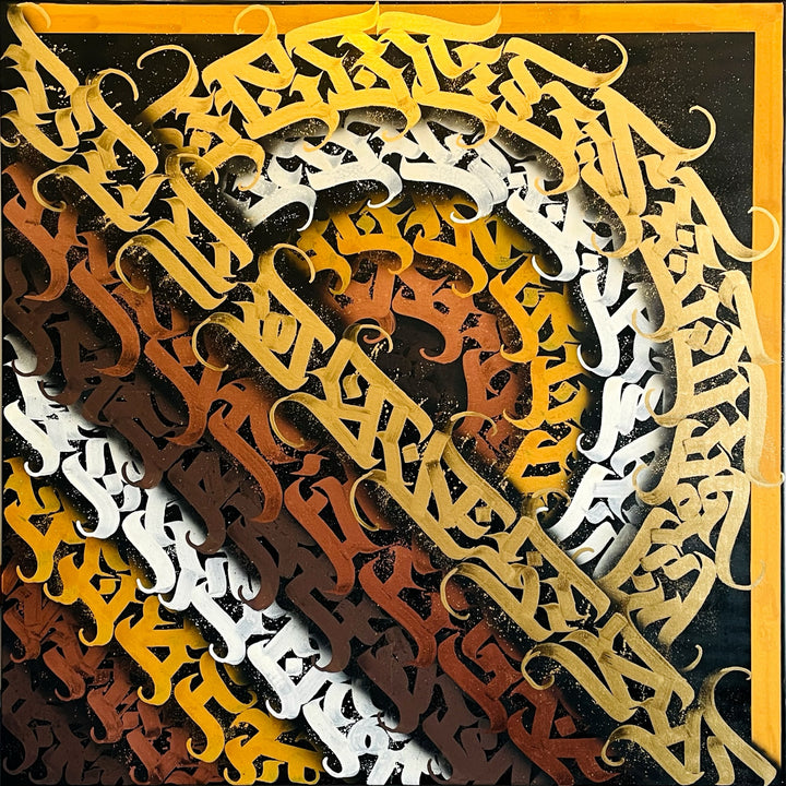 40x40 calligraffiti box canvas, made with original hand painted brush calligraphy by Burnzy Art, made with acrylic with spray paint, it comes signed, dated with certificates of authenticity.