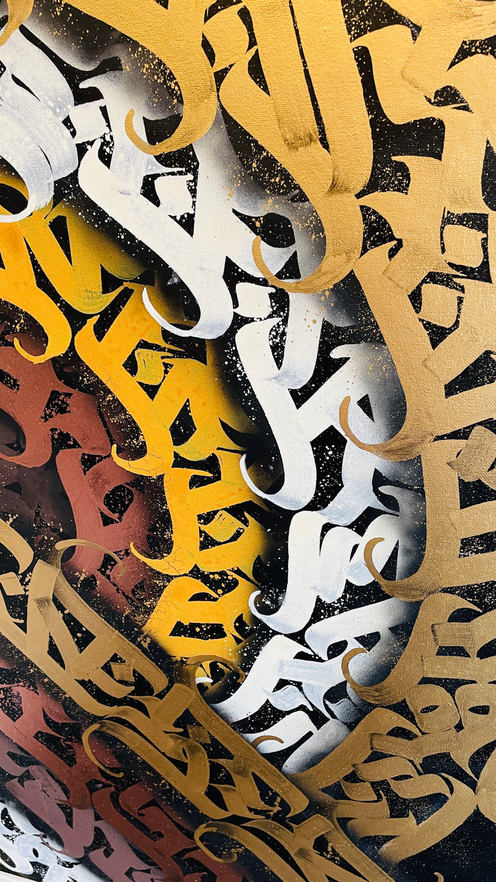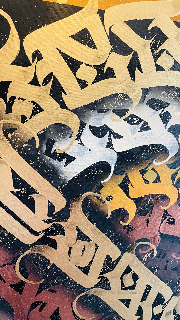 Discover the captivating allure of 'Eclipse of Expressions,' where the timeless beauty of calligraphy intertwines with the bold spirit of graffiti. This unique artwork showcases intricate lettering dancing in a vibrant explosion of colors, inviting viewers into a world of creativity and cultural fusion. Each brushstroke tells a story, merging elegance with urban grit, making it a striking centerpiece for any art lover. Dive into the heart of modern artistry and let this piece inspire your imagination!"