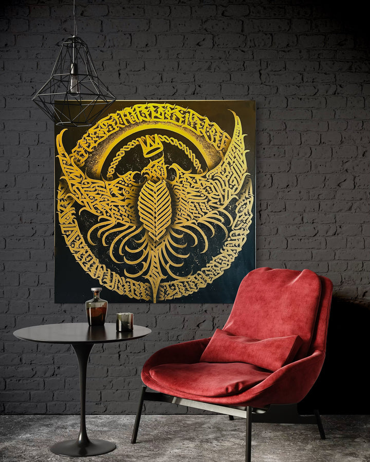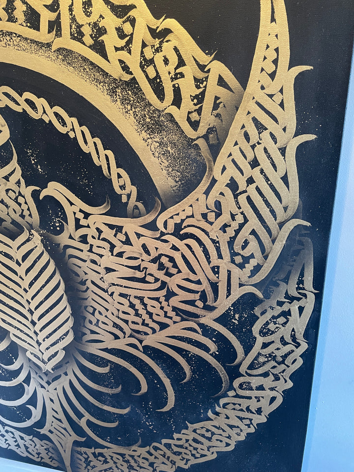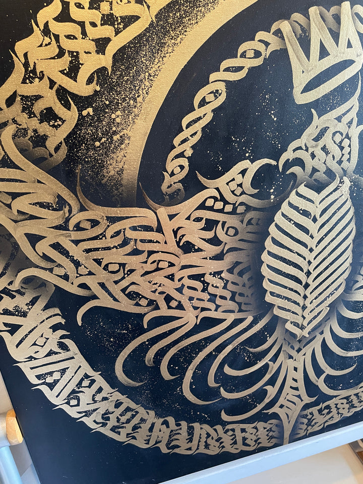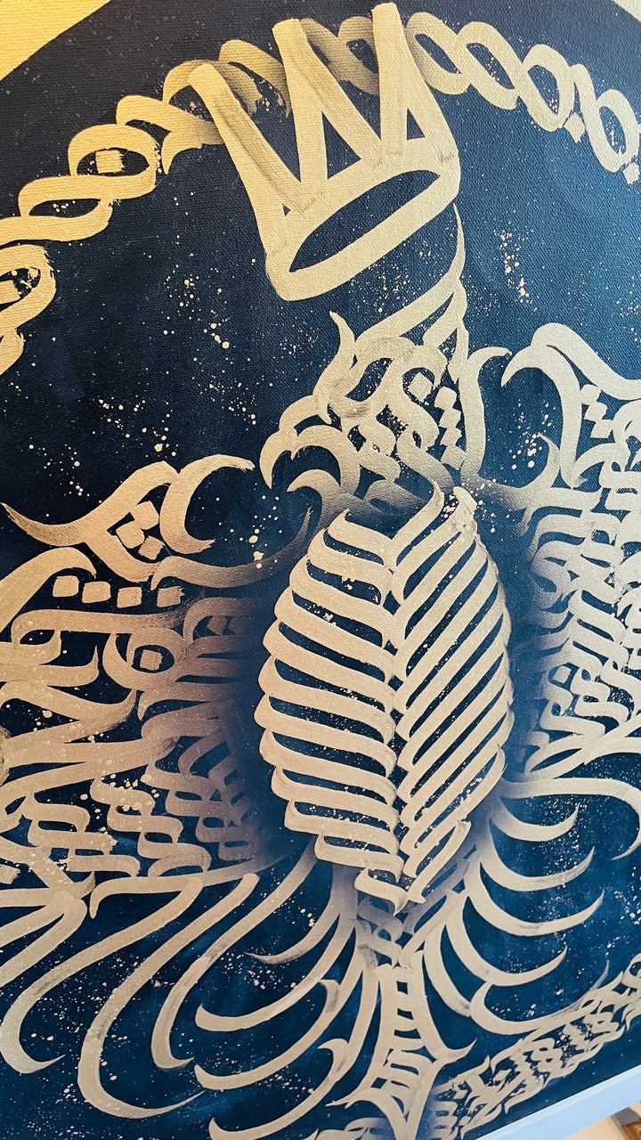 40x40 calligraffiti box canvas, made with original hand painted brush calligraphy by Burnzy Art, made with acrylic and spray paint, it comes signed, dated with certificates of authenticity.