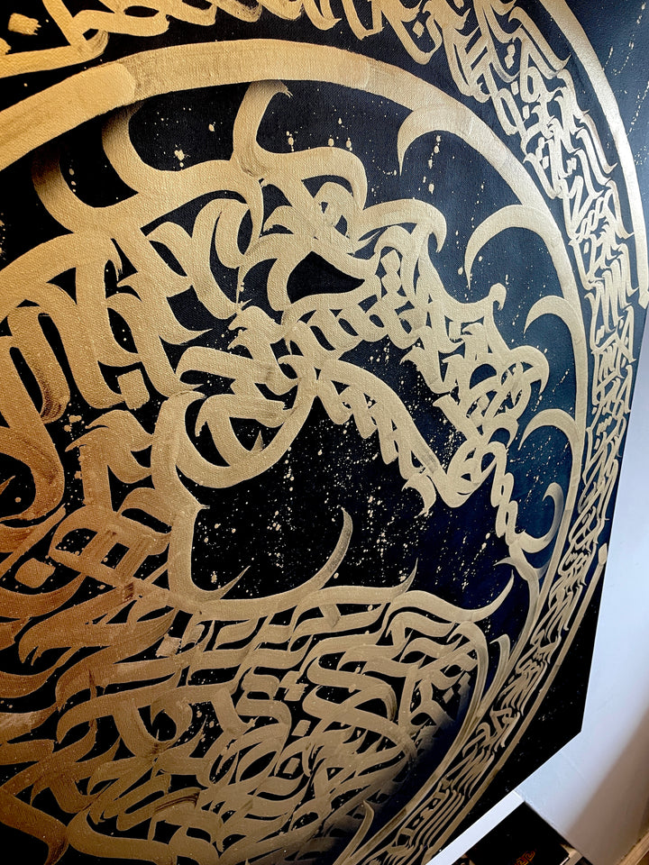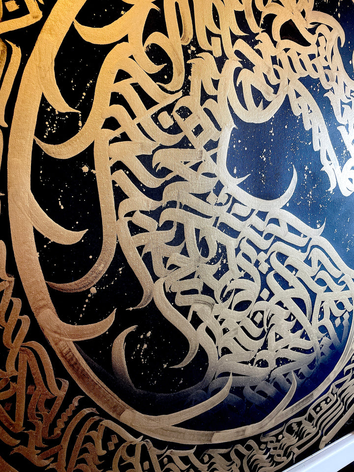 40x40 calligraffiti box canvas, made with original hand painted brush calligraphy by Burnzy Art, made with acrylic and spray paint, it comes signed, dated with certificates of authenticity.