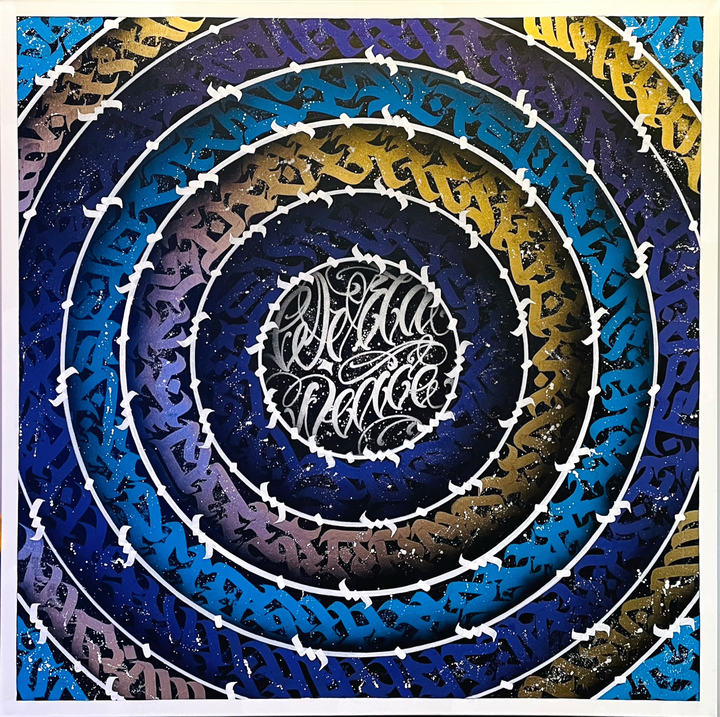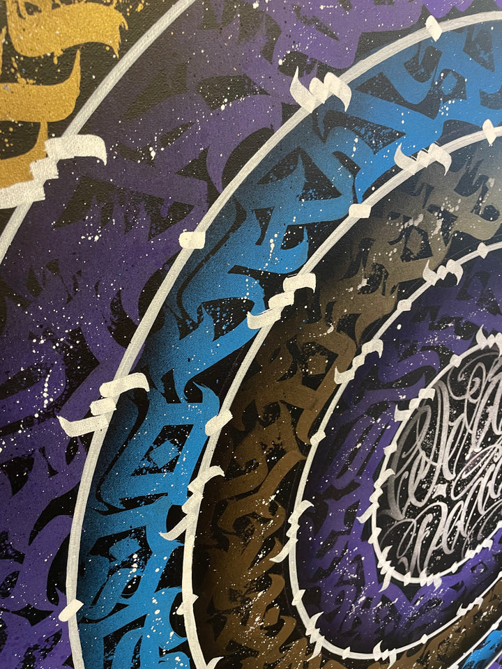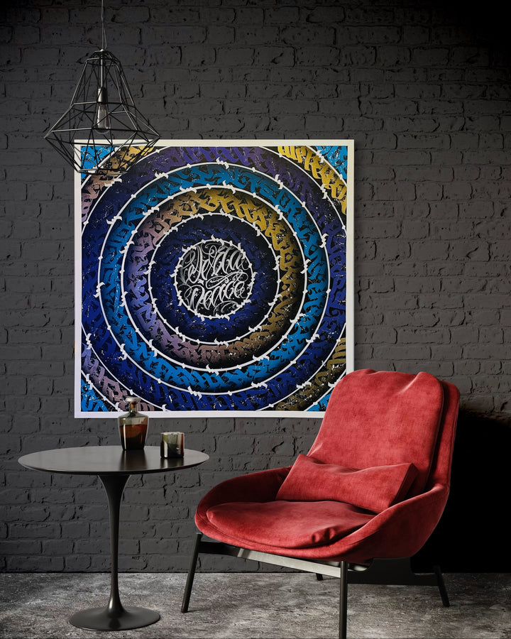 40x40 calligraffiti box canvas, made with original hand painted brush calligraphy by Burnzy Art, made with acrylic with spray paint, it comes signed, dated with certificates of authenticity.